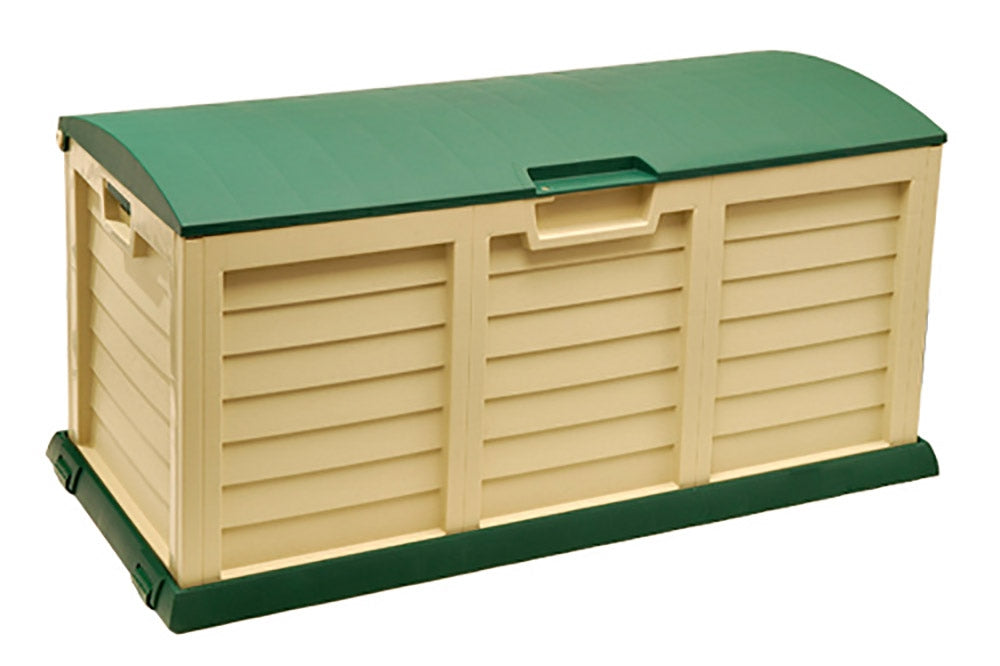 Coffre rectangulaire 140x61x69cm en résine à roulettes Bauer beige et vert