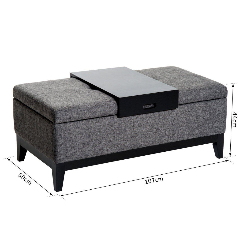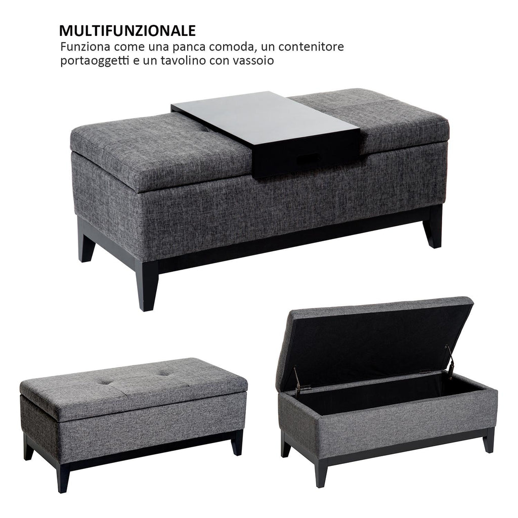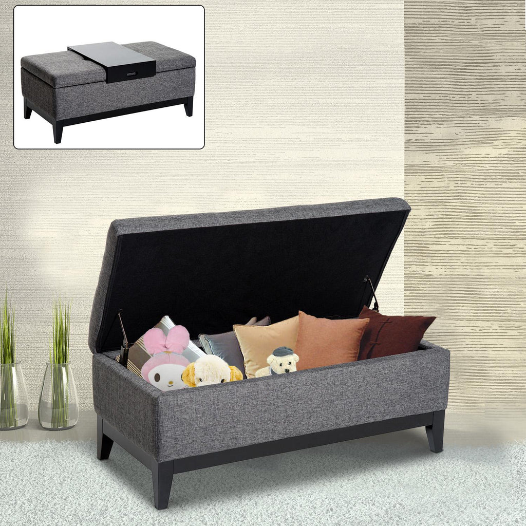 Coffre rembourré avec compartiment de rangement et plateau gris 107x50x44 cm
