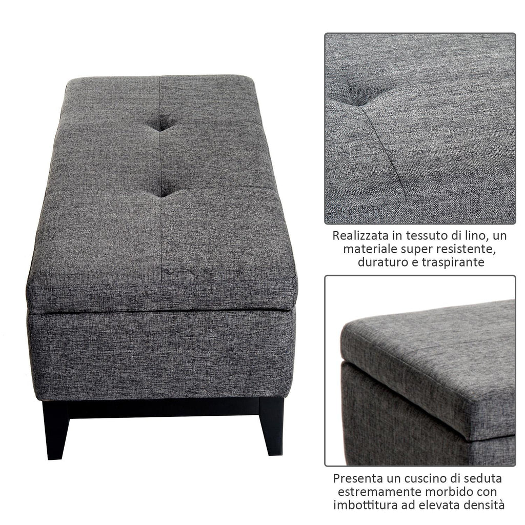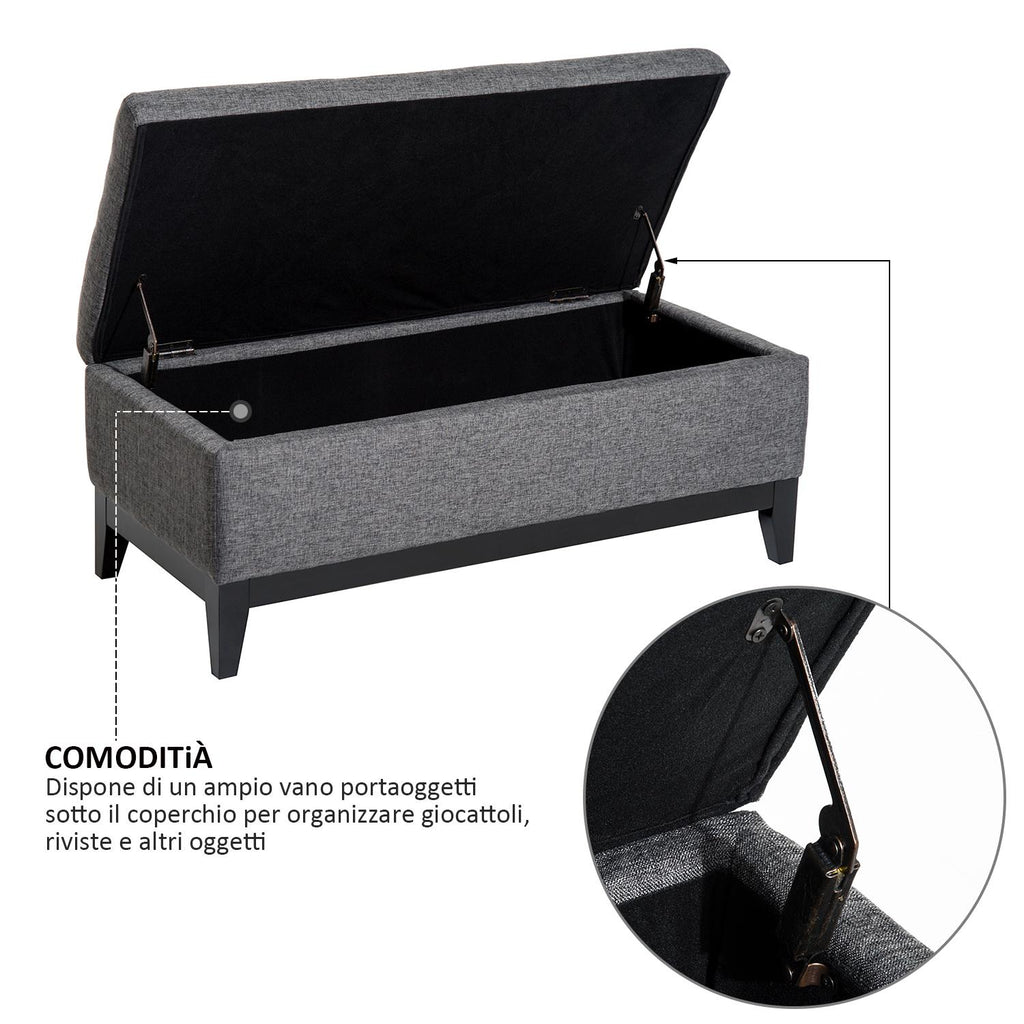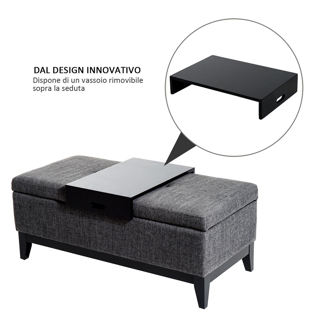 Coffre rembourré avec compartiment de rangement et plateau gris 107x50x44 cm