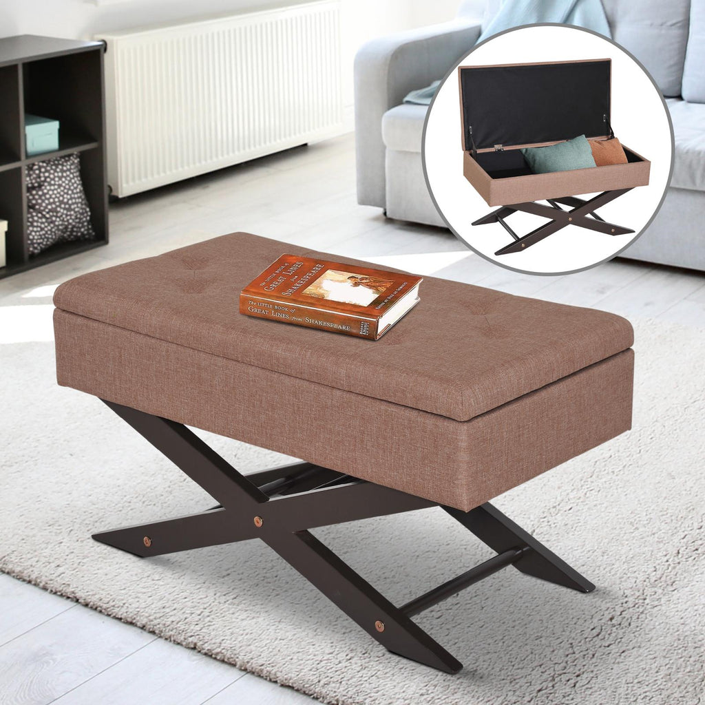 Coffre de rangement pouf rembourré marron 80x40x42 cm