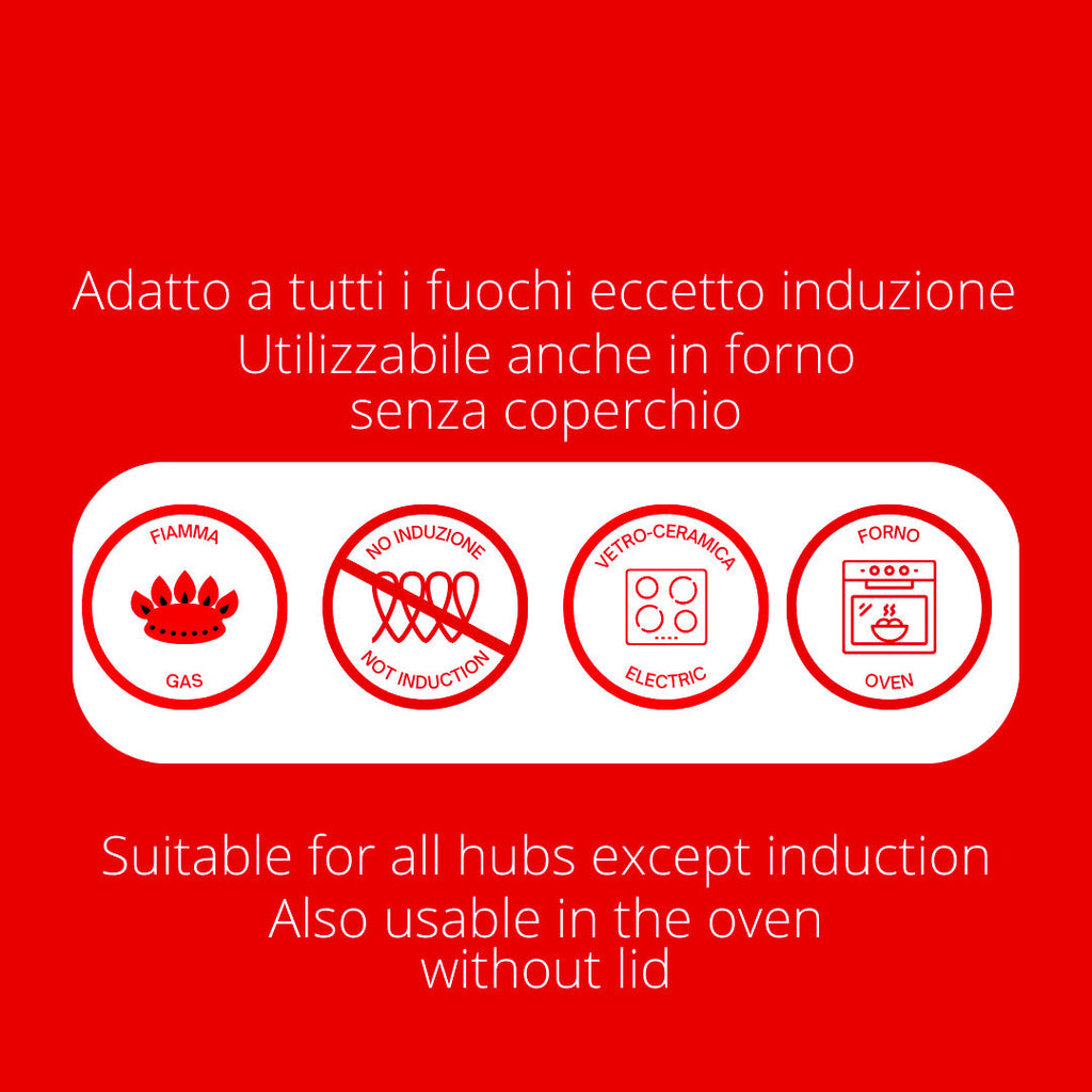- Adatto a tutti i fuochi eccetto induzione
