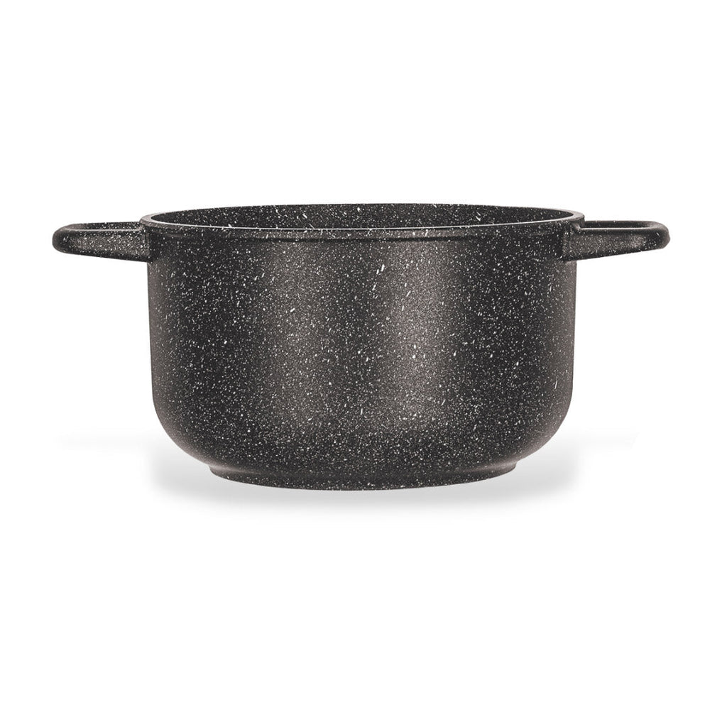 Alta resistenza e massima antiaderenza. Il rivestimento è antiaderente multistrato e rinforzato da particelli minerali, finitura effetto pietra ; adatto al contatto alimentare per una cucina sana salutare e senza l'utilizzo di grassi.