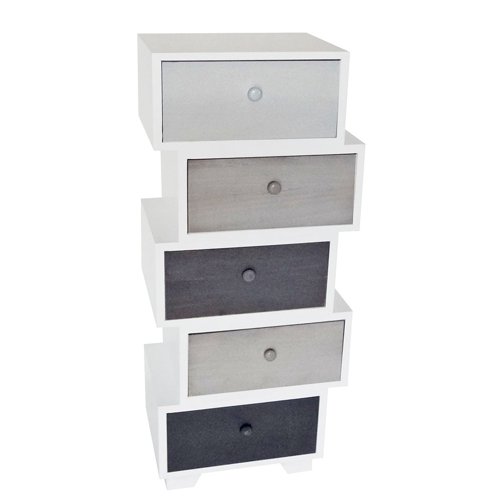 5 Tiroirs Articulés - possibilité de placer les tiroirs côte à côte pour créer un meuble selon vos envies, en bois de Paulownia, peint à l'eauCommode divisible à 5 tiroirs en bois de paulownia blanc Fadi