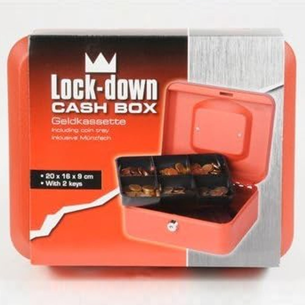 Cassetta di sicurezza porta contanti 20x16x9 cm in metallo resistente con vassoio interno estraibile per monete e maniglia per trasporto facile. Resistente agli urti è una garanzia per i vostri risparmi. Dotata di due chiavi.