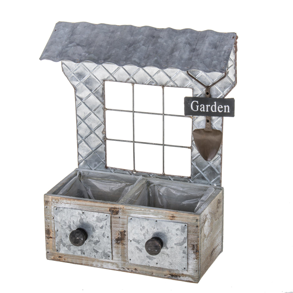 Coffret en bois et métal avec toit, à suspendre. Hauteur 32 cm