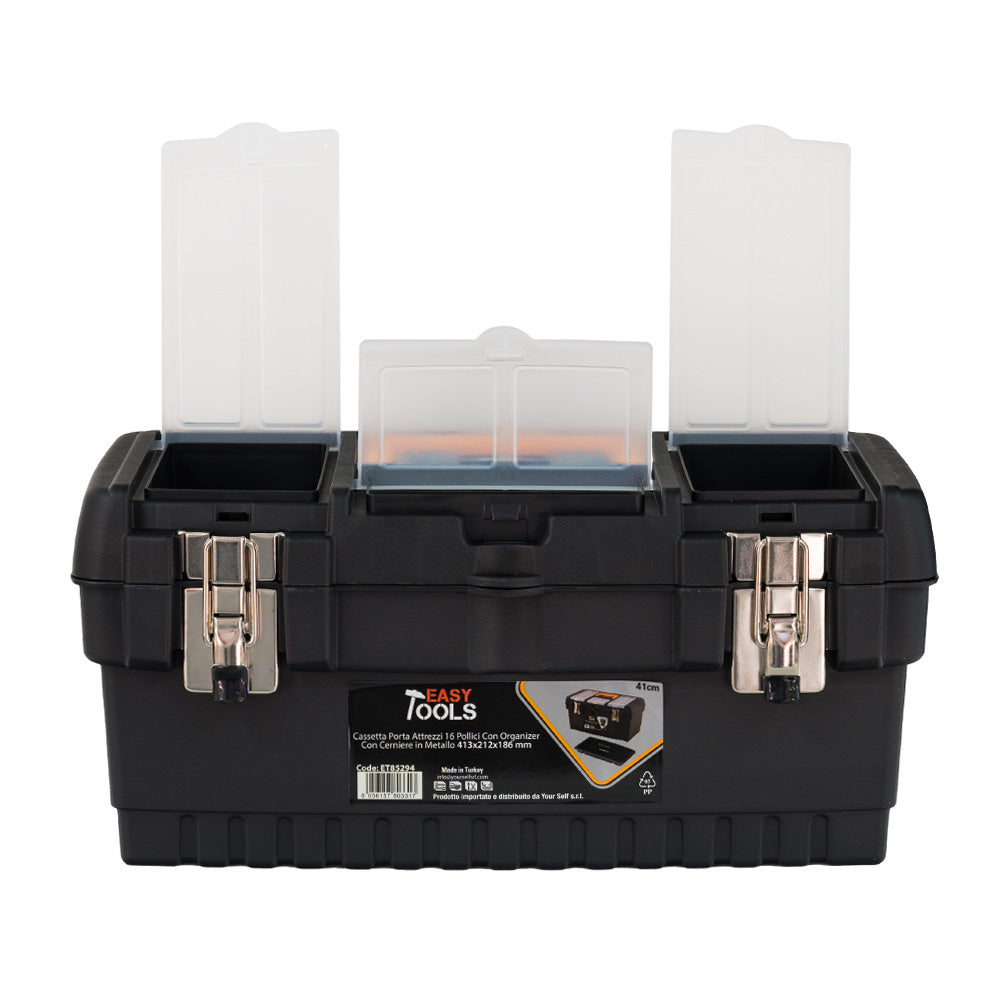 Boîte à outils en plastique 41,3x21,2x18,6 cm Charnières en métal noir