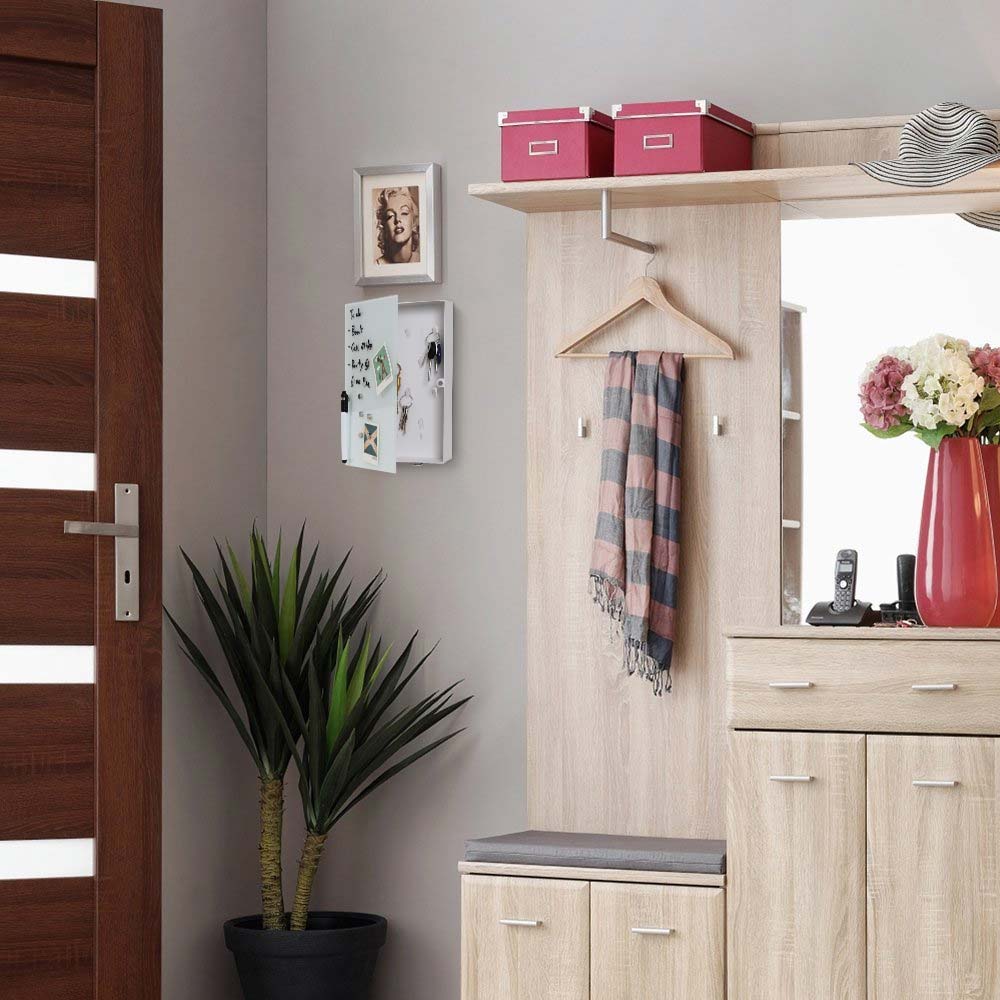 Ma ciò che rende davvero unica questa bellissima cassetta portachiavi è la particolare anta con lavagna magnetica in vetro utile per annotare appuntamenti, cose da comprare e tutto ciò che vorrai!