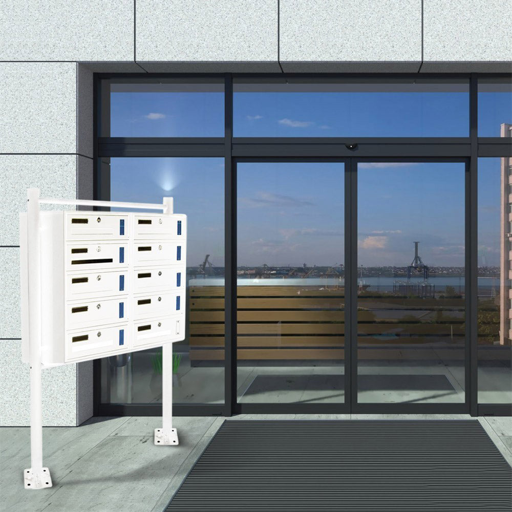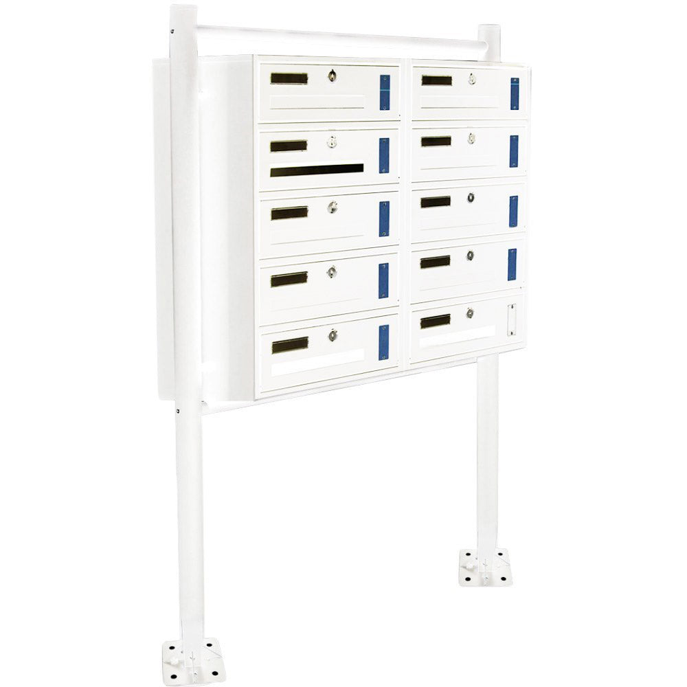 Boîte aux Lettres 160x60x17 cm 10 Places avec Support Métal Blanc