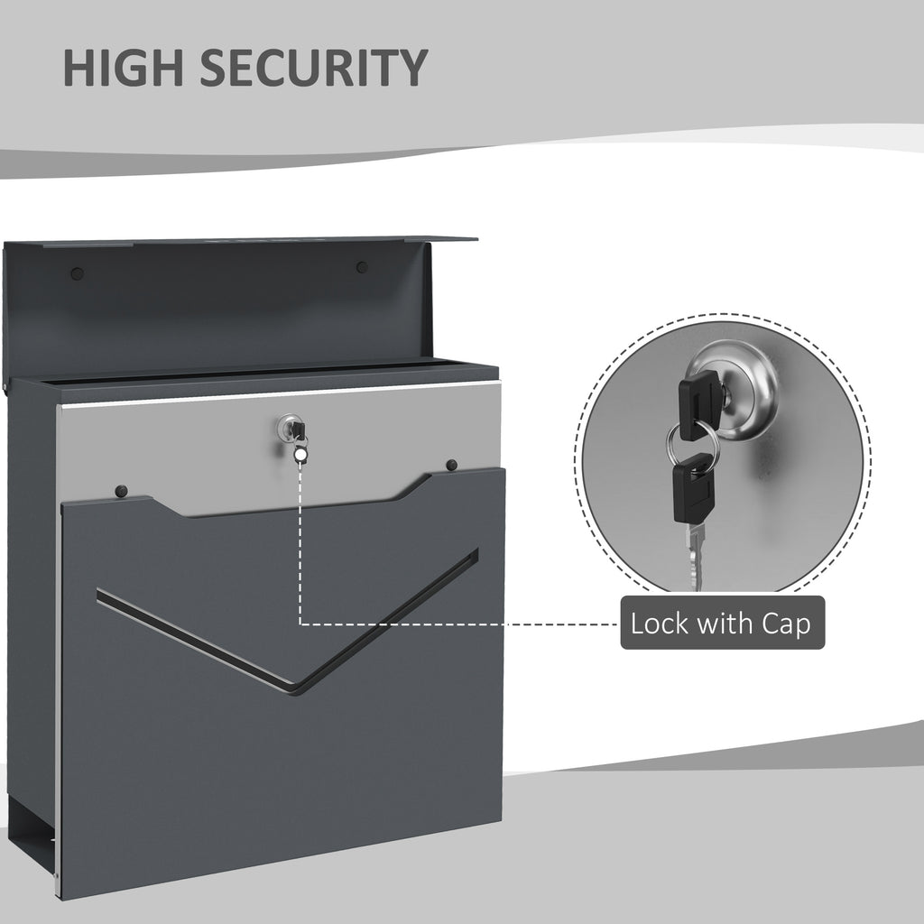 La cassetta postale ti permetterà di ricevere la posta in modo sicuro ed elegante. Realizzata in robusto acciaio, la struttura è resistente e durevole, adatta all'uso esterno. La fessura lunga 34 cm facilita l'inserimento delle lettere e il design è decisamente sicuro: la serratura inclusa darà solo a te la certezza di accedere alla posta designata. Inoltre, l'elegante finitura grigio della cassetta portalettere aggiunge un tocco di raffinatezza allo spazio esterno.