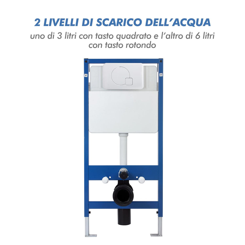 - 2 niveaux de chasse d'eau : 3 litres avec bouton carré et 6 litres avec bouton rond