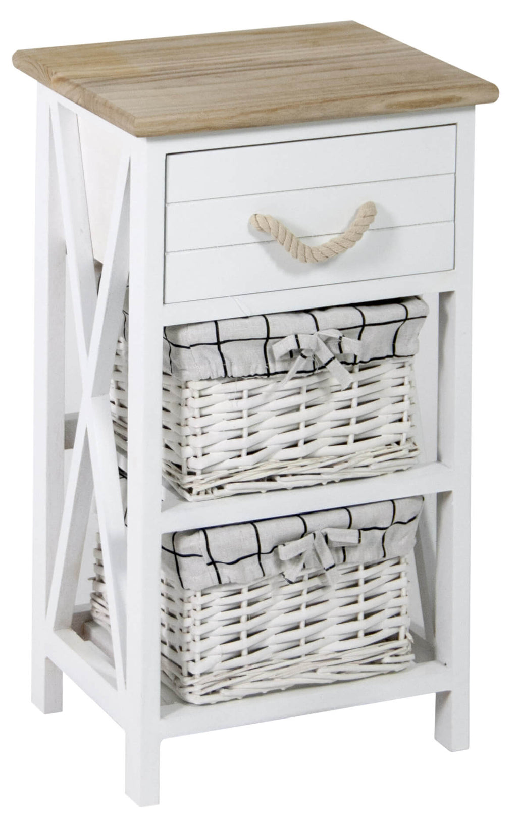 Commode 1 Tiroir 2 Paniers 32x26x55 cm en Bois Massif Fumer kate Blanc