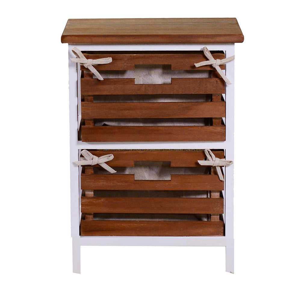 Commode 2 tiroirs en bois 30X27H47cm Atena Noyer et Blanc