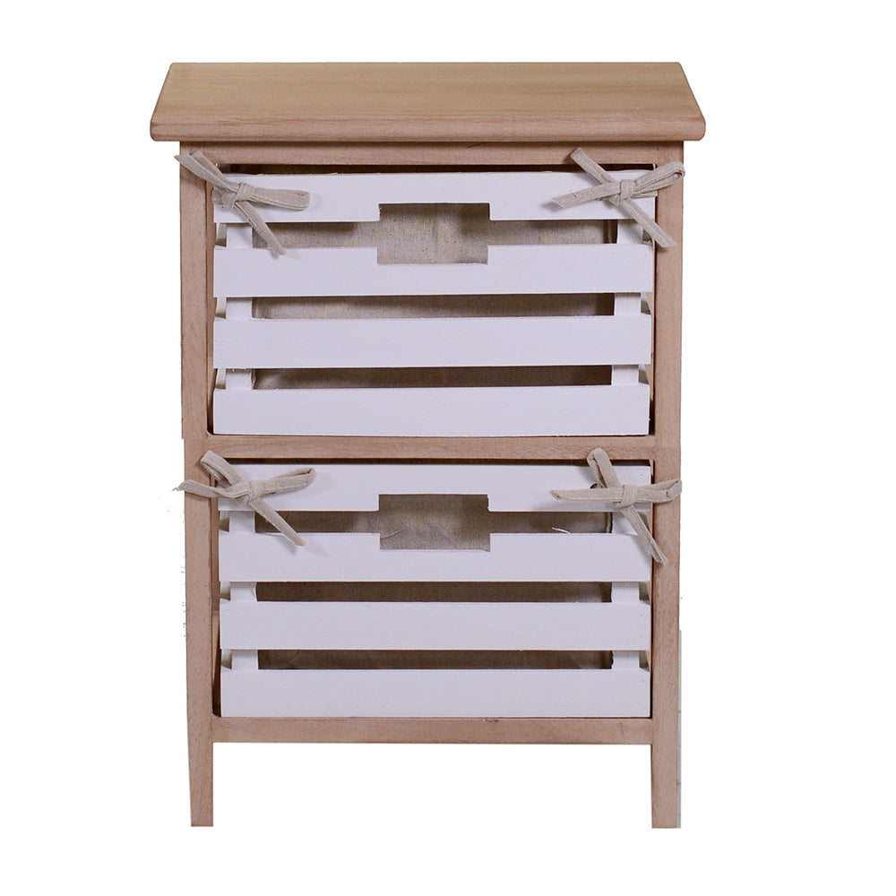 Commode 2 tiroirs en bois 35x27x47cm Arianna Naturel et Blanc