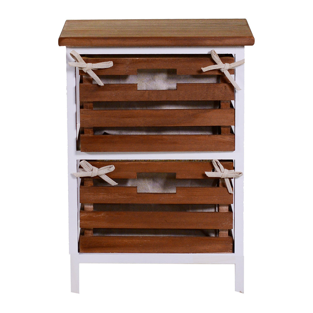 Commode 2 tiroirs en bois 35X27H47cm Atena Noyer et Blanc