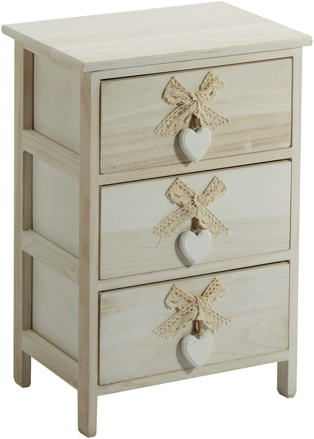 Commode 3 Tiroirs 40x29x58 cm en Bois avec Coeur