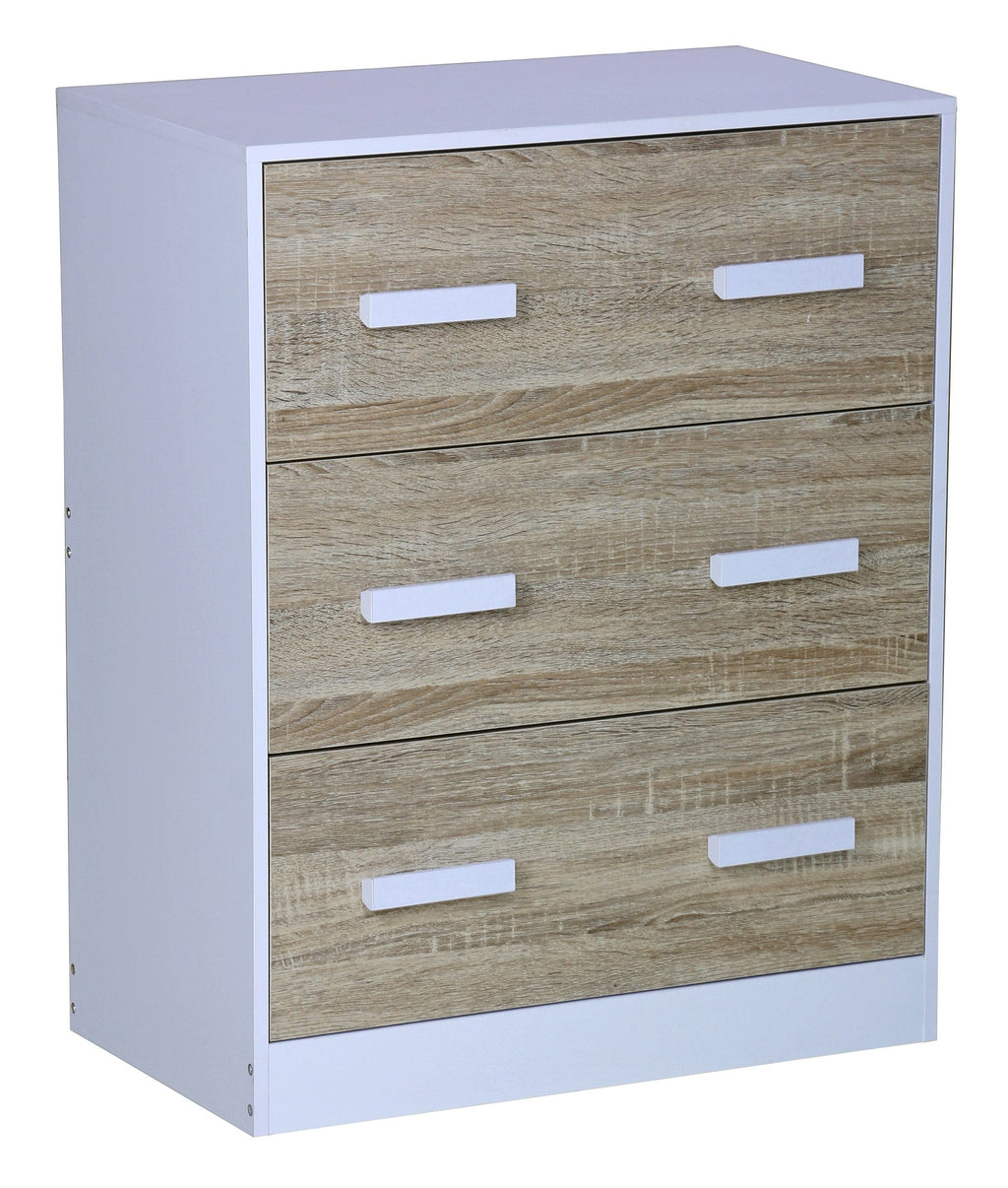 Commode 3 Tiroirs 60x34x75 cm en Bois Aggloméré
