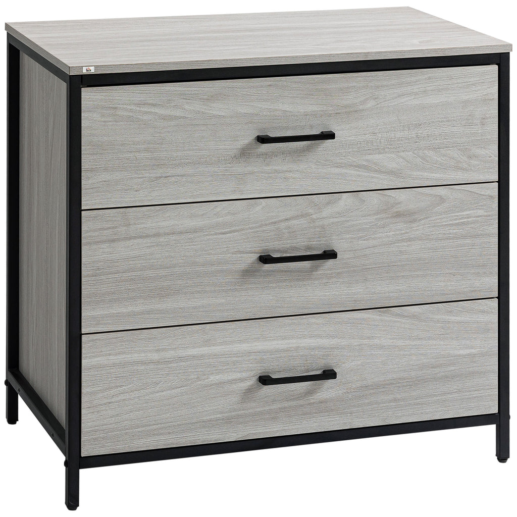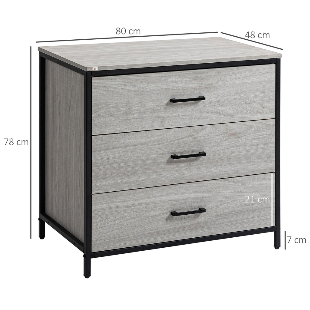 Commode 3 Tiroirs 80x48x78 cm en Bois et Acier Gris Clair