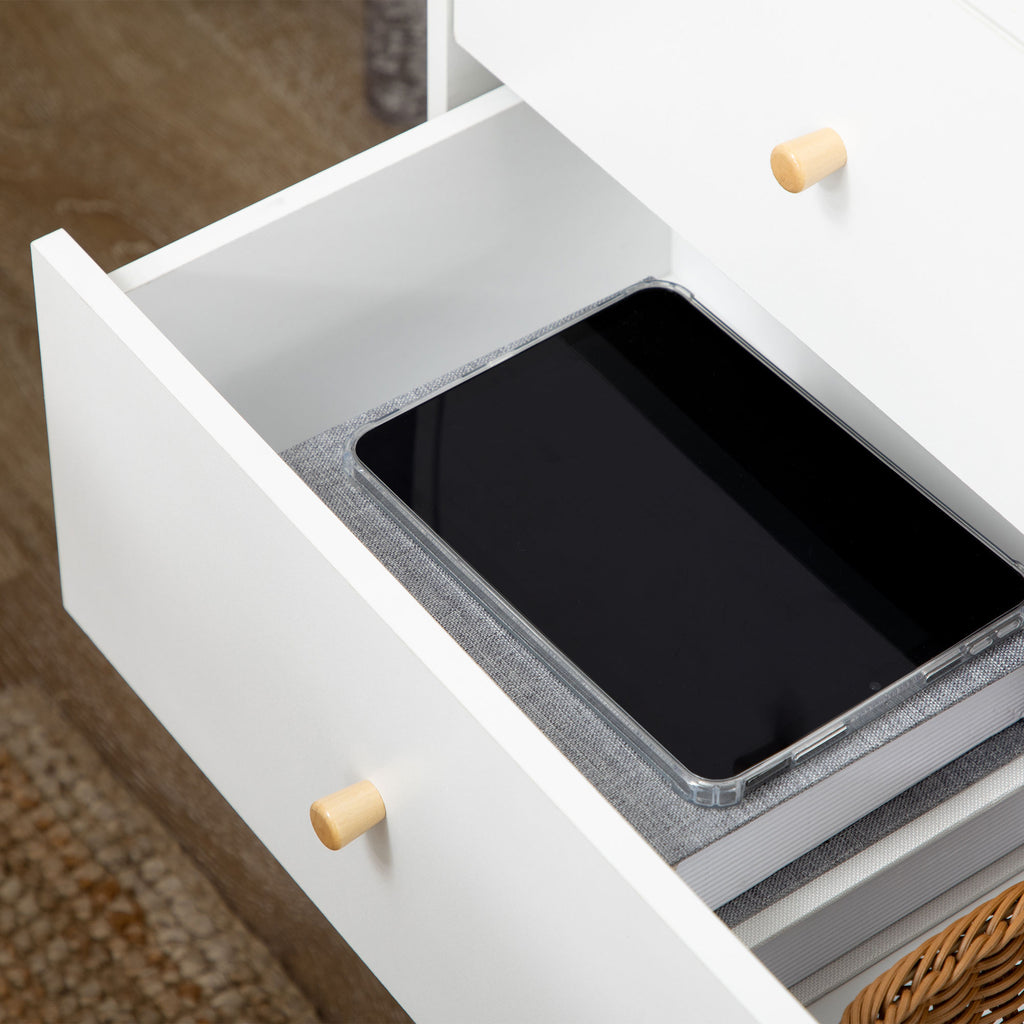 - CONCEPTION PRATIQUE : Le fond surélevé facilite grandement les opérations de nettoyage et d'entretien. Les poignées escamotables de la commode en bois facilitent l'ouverture et la fermeture des tiroirs