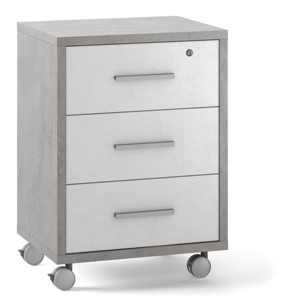 Commode 3 Tiroirs sur Roulettes 51x71x41 cm Ciment/Oxyde Blanc