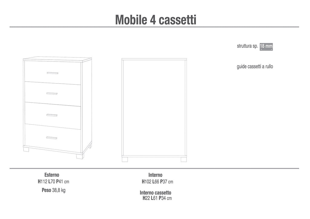 - Cassettiera 4 Cassetti