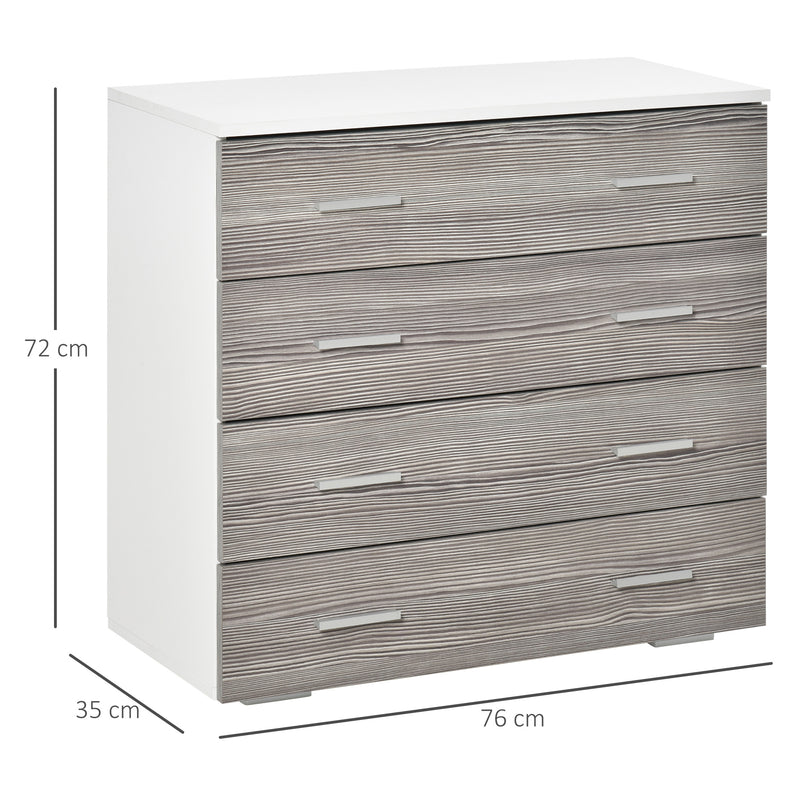 Commode 4 Tiroirs avec Poignées Aluminium et Structure Bois 76x35x72 cm Blanc Gris