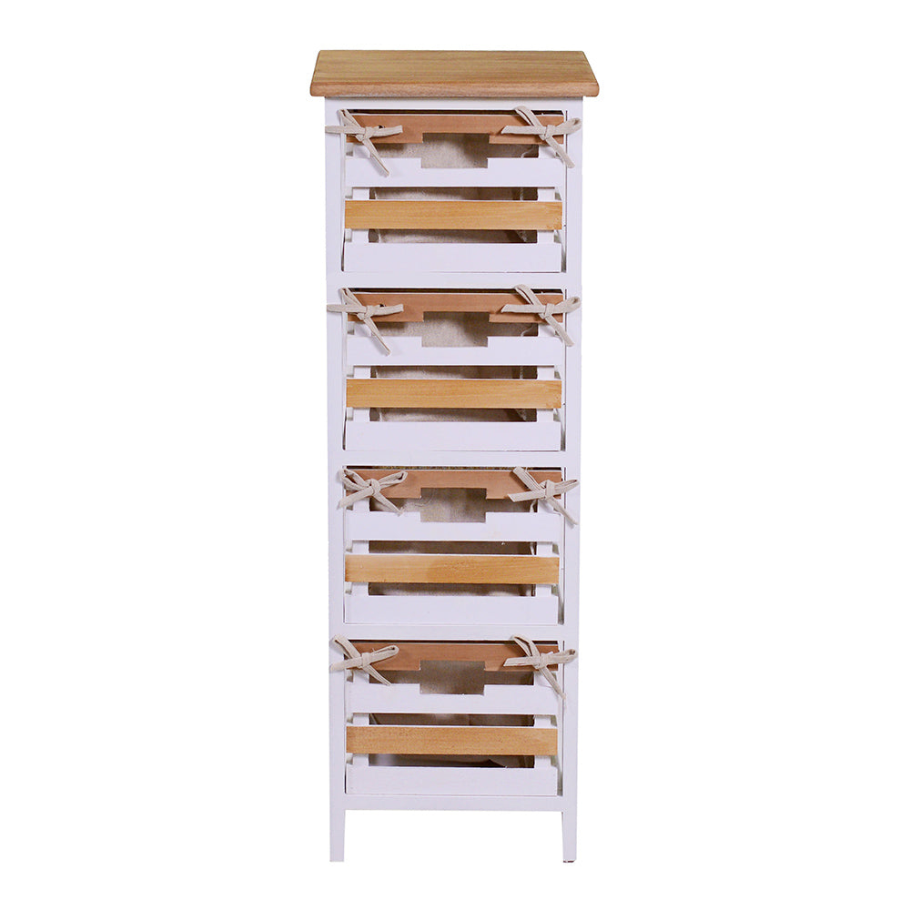 Commode 4 tiroirs en bois 30X27H85cm Matilda Noyer clair et blanc