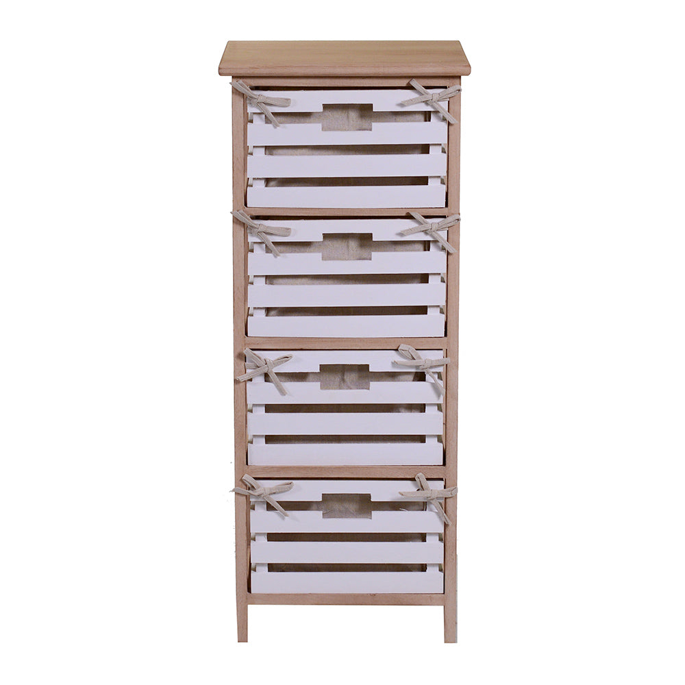 Commode 4 tiroirs en bois 35x27x85cm Arianna Naturel et Blanc