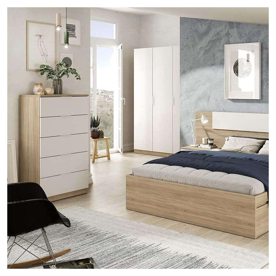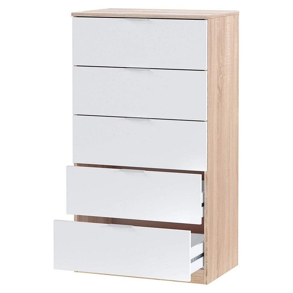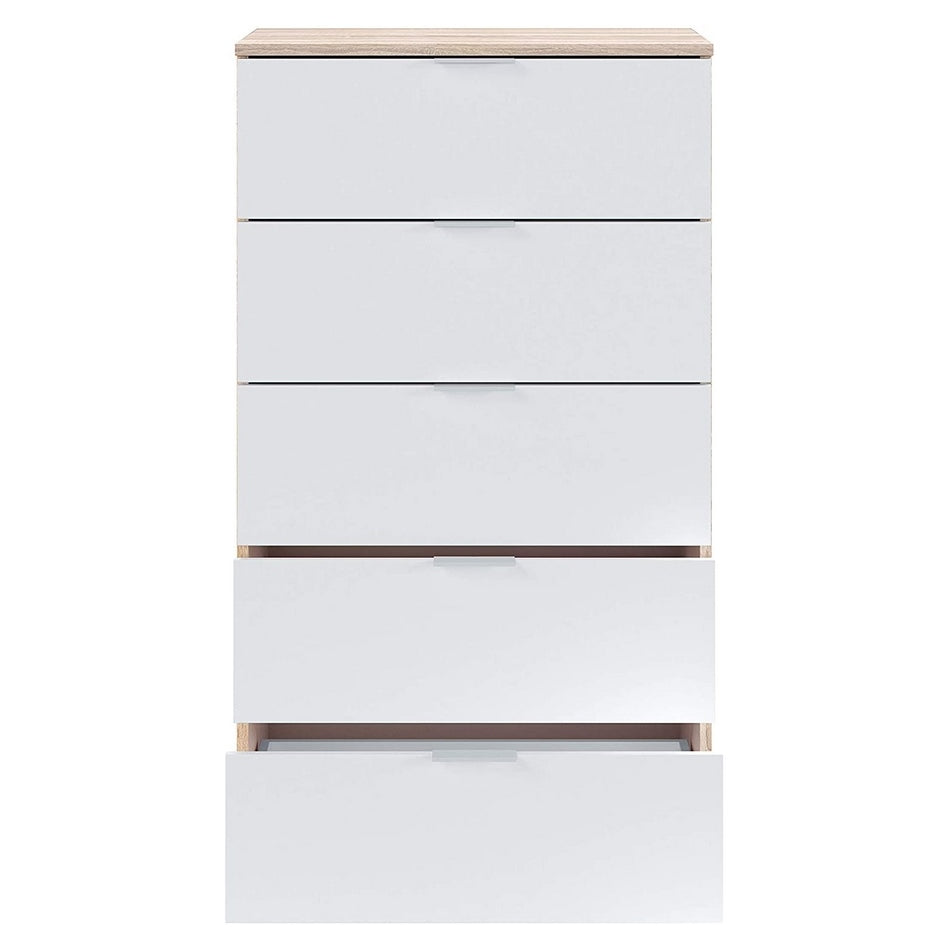 Cassettiera 5 Casetti 60x110x40 cm in Legno Bianco e Rovere
