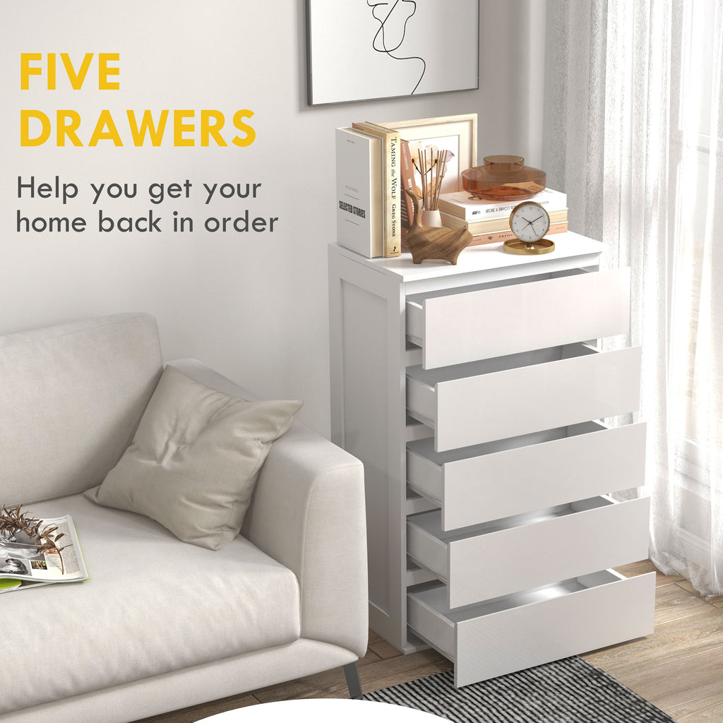 Cassettiera 5 Cassetti con Maniglie Scanalate 60x38x100 cm in Legno Bianco