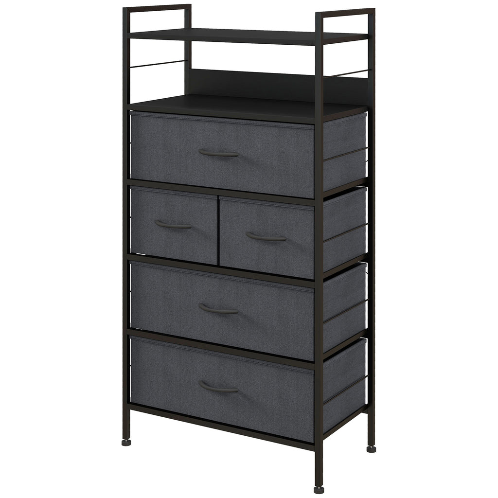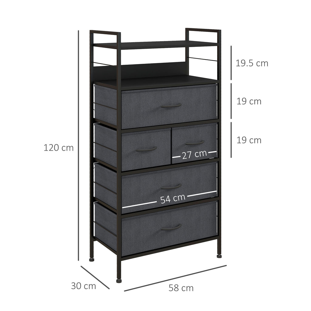 Cassettiera 5 Cassetti Moderna in Tessuto non Tessuto 58x30x120 cm In Acciaio e MDF Nera