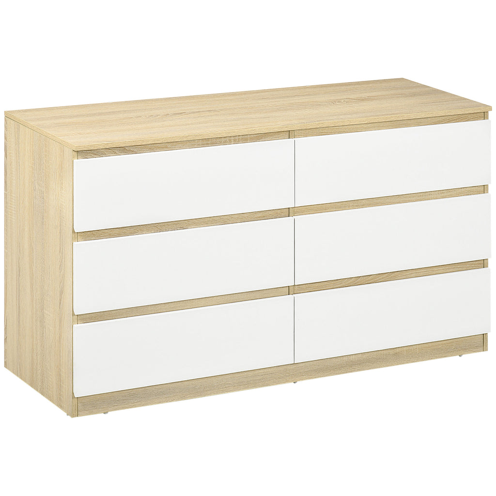 Cassettiera 6 Cassetti 135x48x77 cm in Legno Bianco e Colore Legno