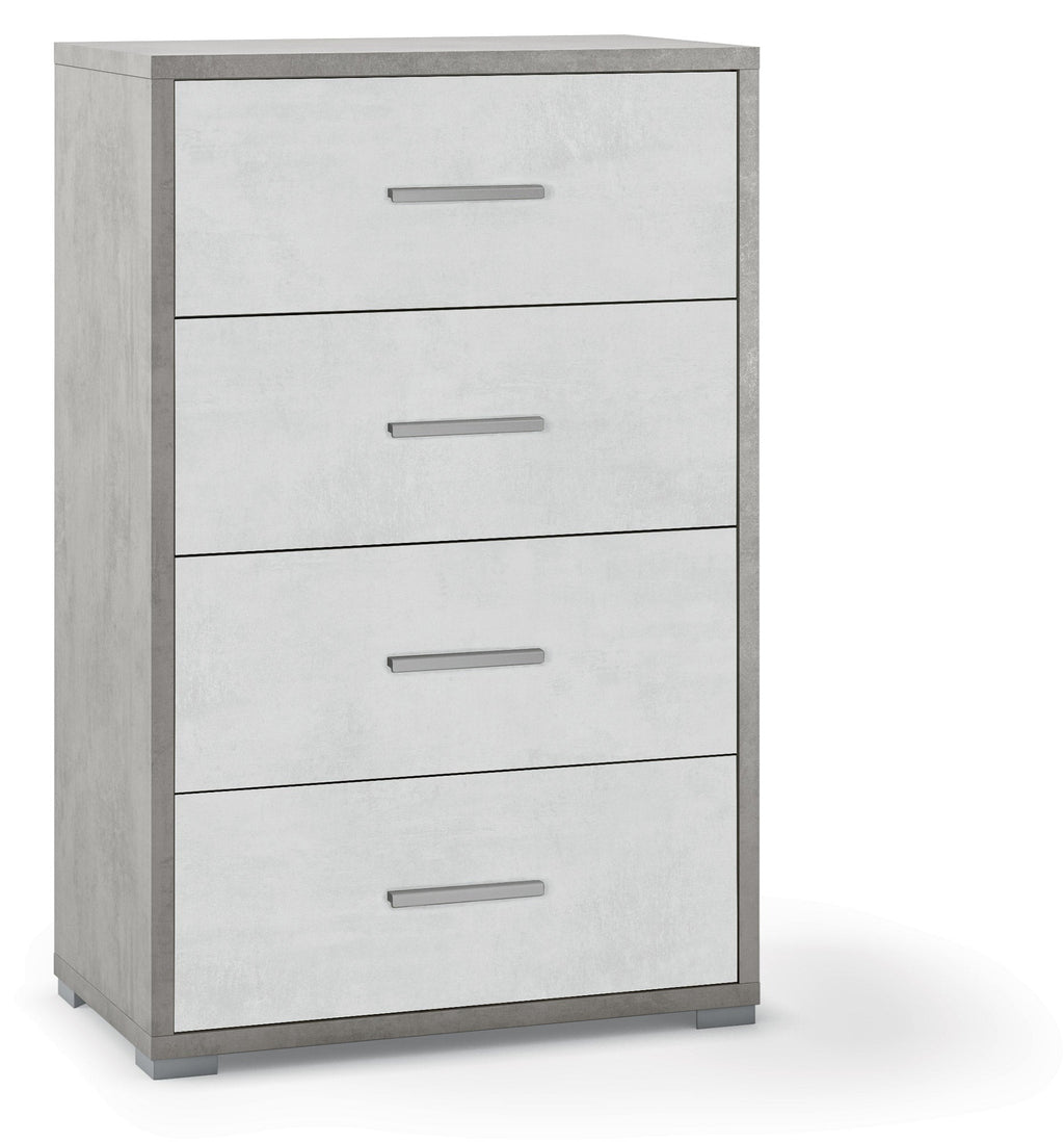 Commode 4 Tiroirs 71x110x41 cm Ciment/Blanc Oxyde