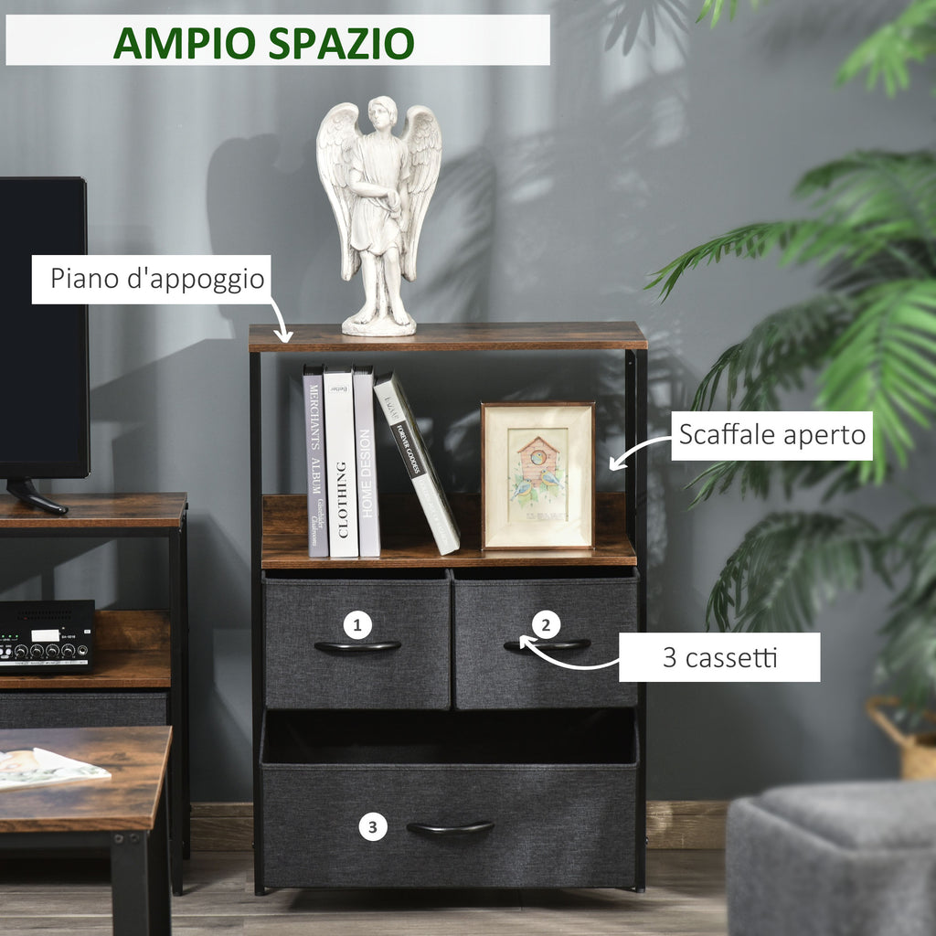 Commode Polyvalente 58x29x81,5 cm 2 Étagères 3 Tiroirs en Tissu Gris