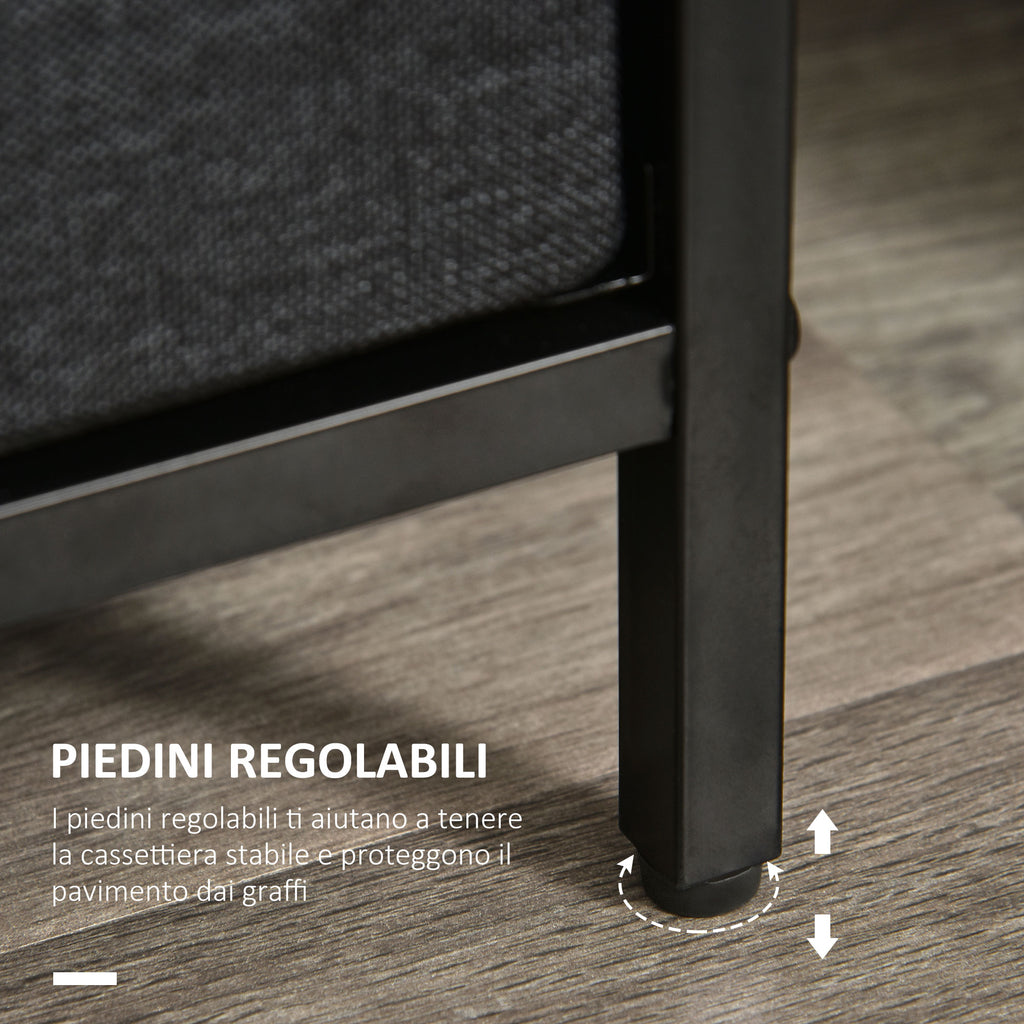 Cette commode pratique est l'accessoire d'ameublement parfait pour garder tous vos objets en ordre. Il est composé d'un grand plateau, d'un compartiment ouvert et de 4 tiroirs rabattables en tissu, vous offrant ainsi beaucoup d'espace pour ranger vêtements, jeux, accessoires et bien plus encore. Grâce à la structure métallique robuste, aux pieds et au système anti-basculement, il offre une stabilité et une sécurité d'utilisation maximales.