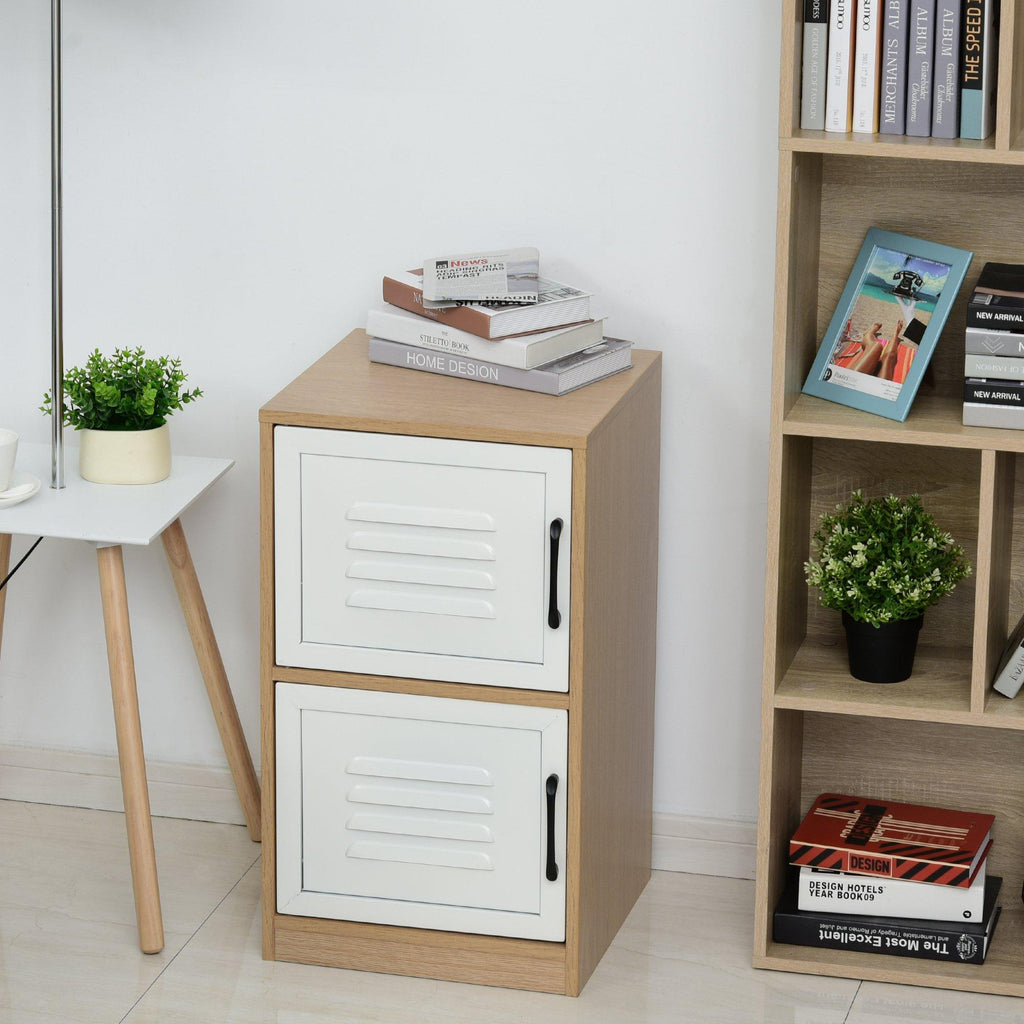 - DESIGN MODERNE : La couleur naturelle du bois et le blanc des portes en métal se fondent parfaitement dans cette commode au look minimaliste, qui se marie parfaitement avec tout type de mobilier.