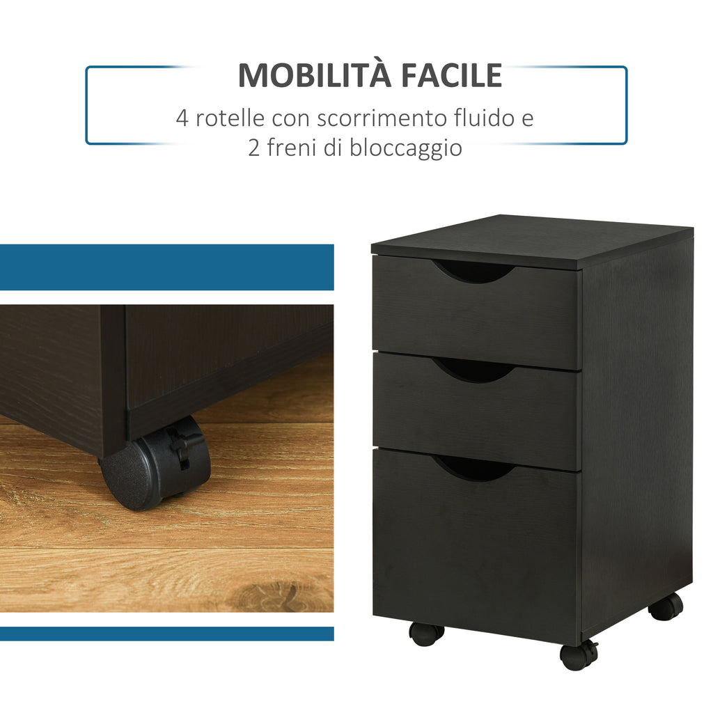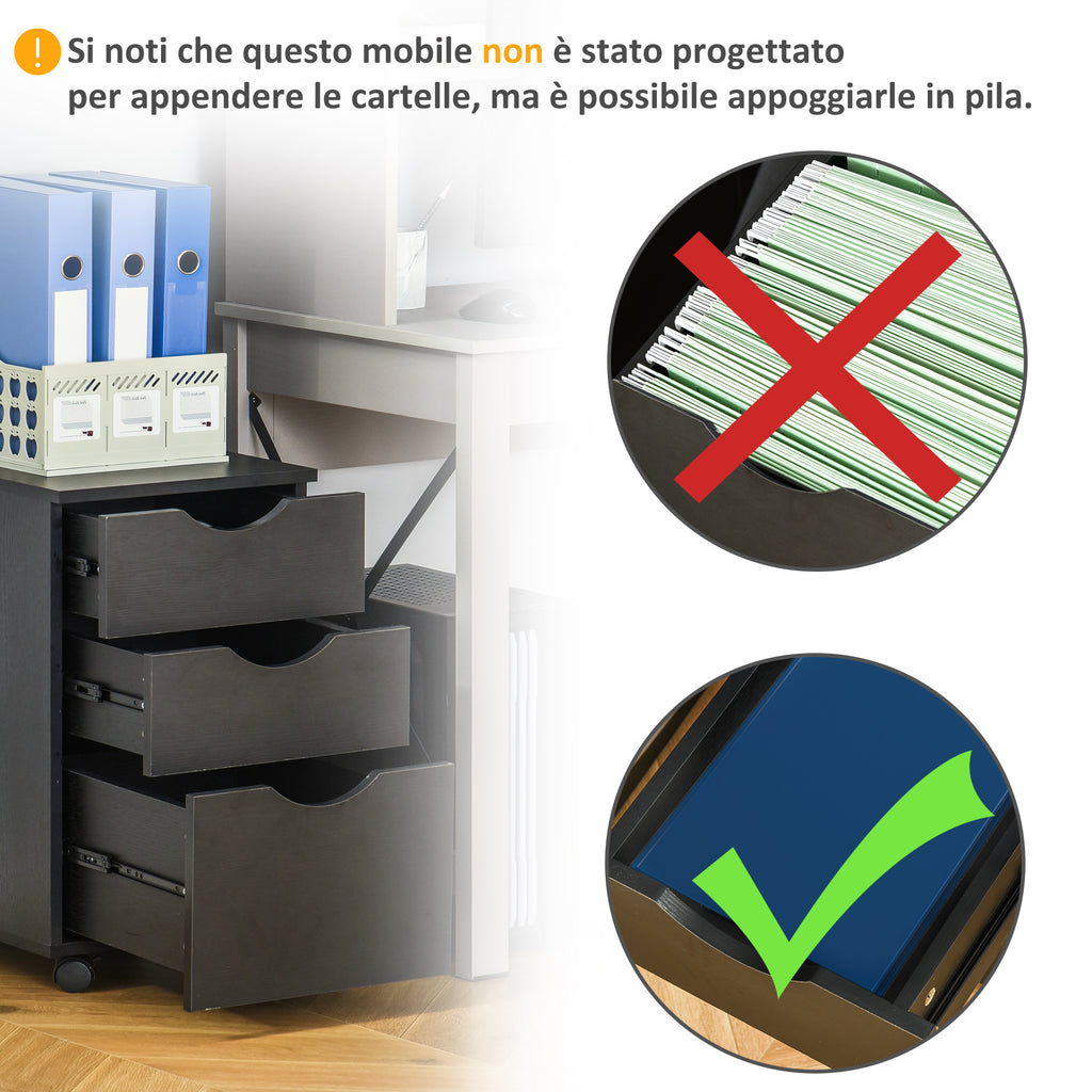 Porte-Documents Bureau 34x40x60,5 cm 3 Tiroirs Noir