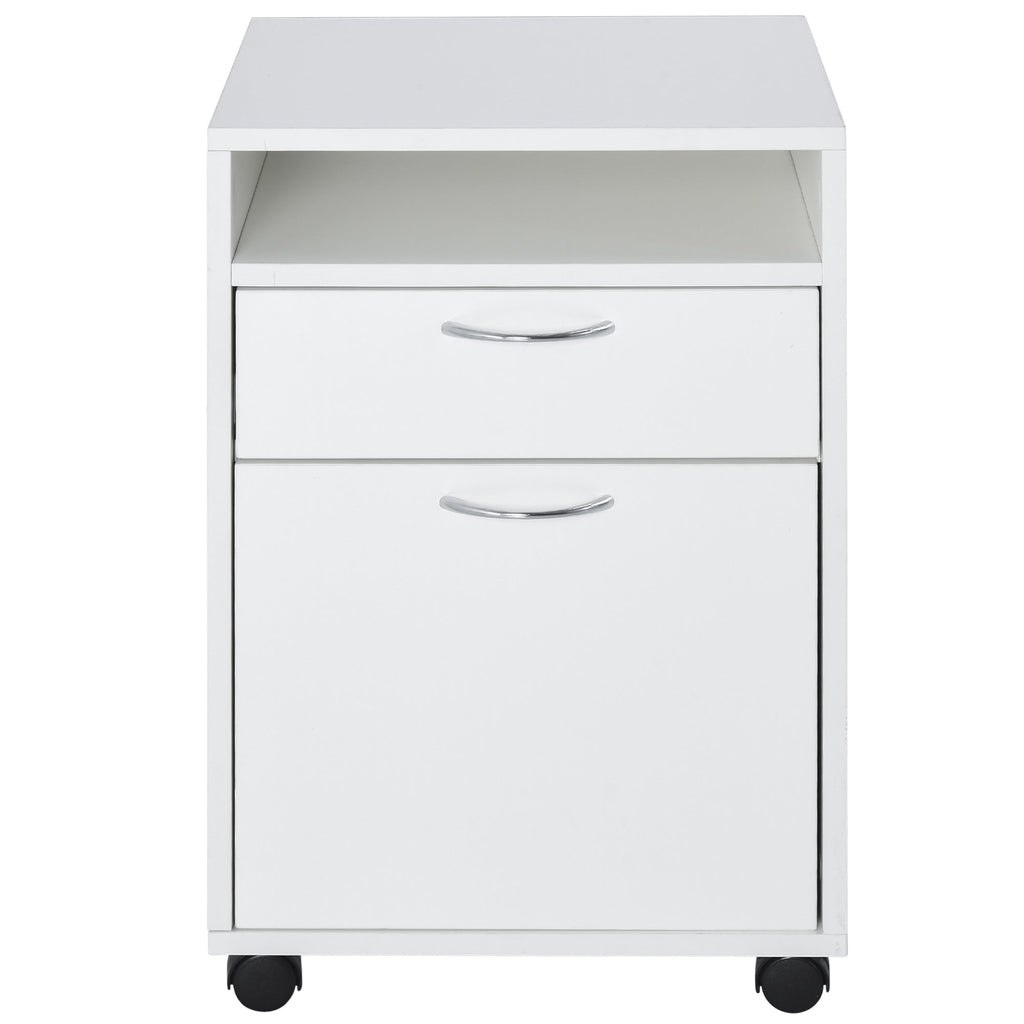 Classeur de Bureau en Bois avec 2 Tiroirs et Roulettes Blanc 40x35x60 cm