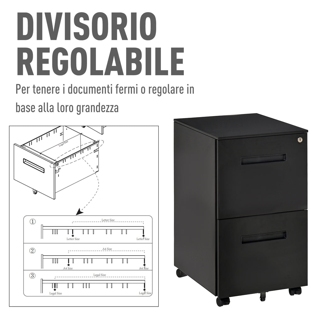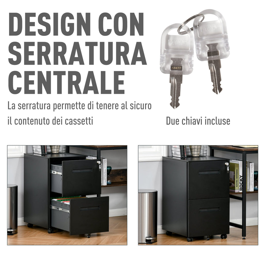 Classeur de Bureau 2 Tiroirs 39x48x67 cm en Acier Noir