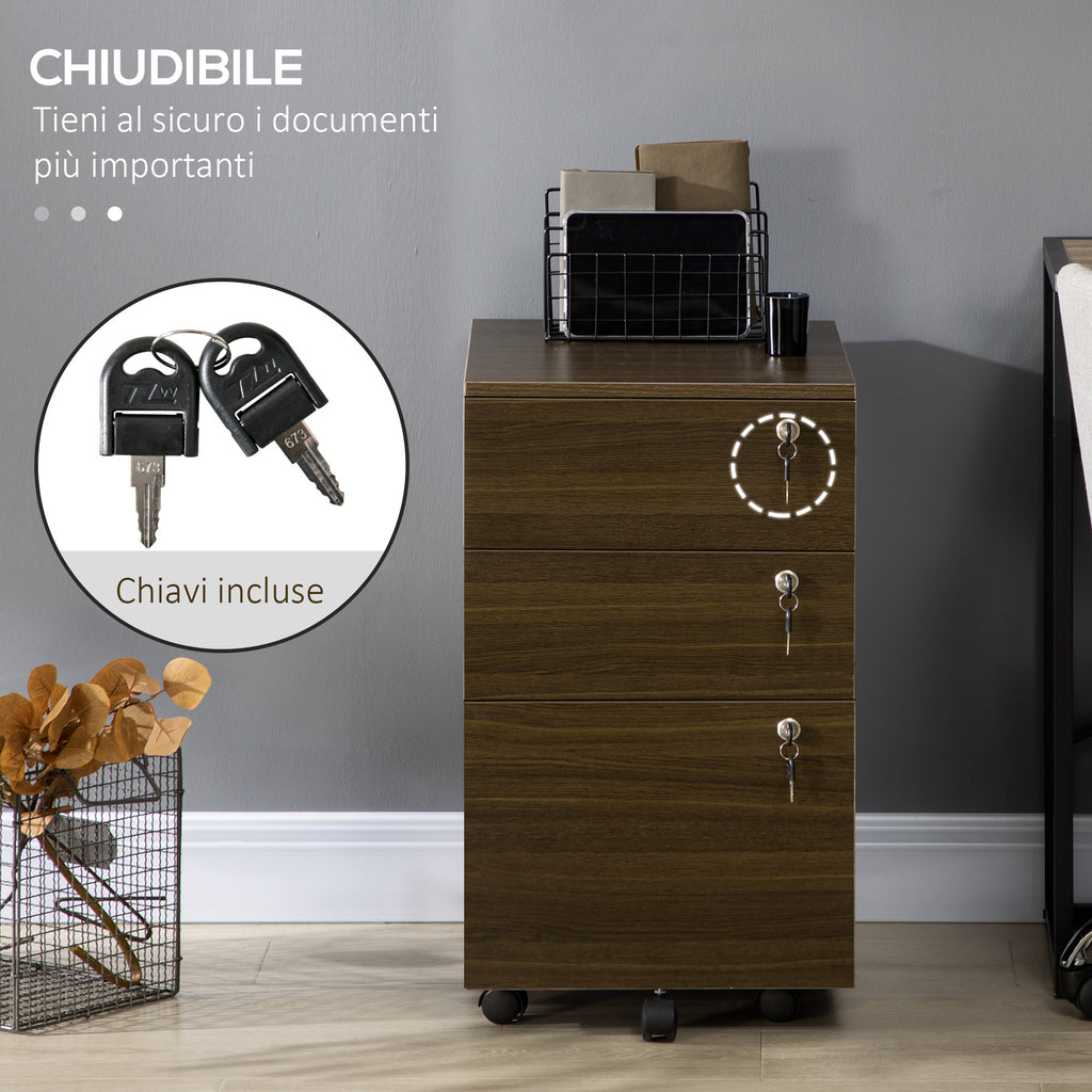 Commode Classeur 3 Tiroirs 40x50x68,5 cm pour Bureau en MDF avec Roulettes Marron
