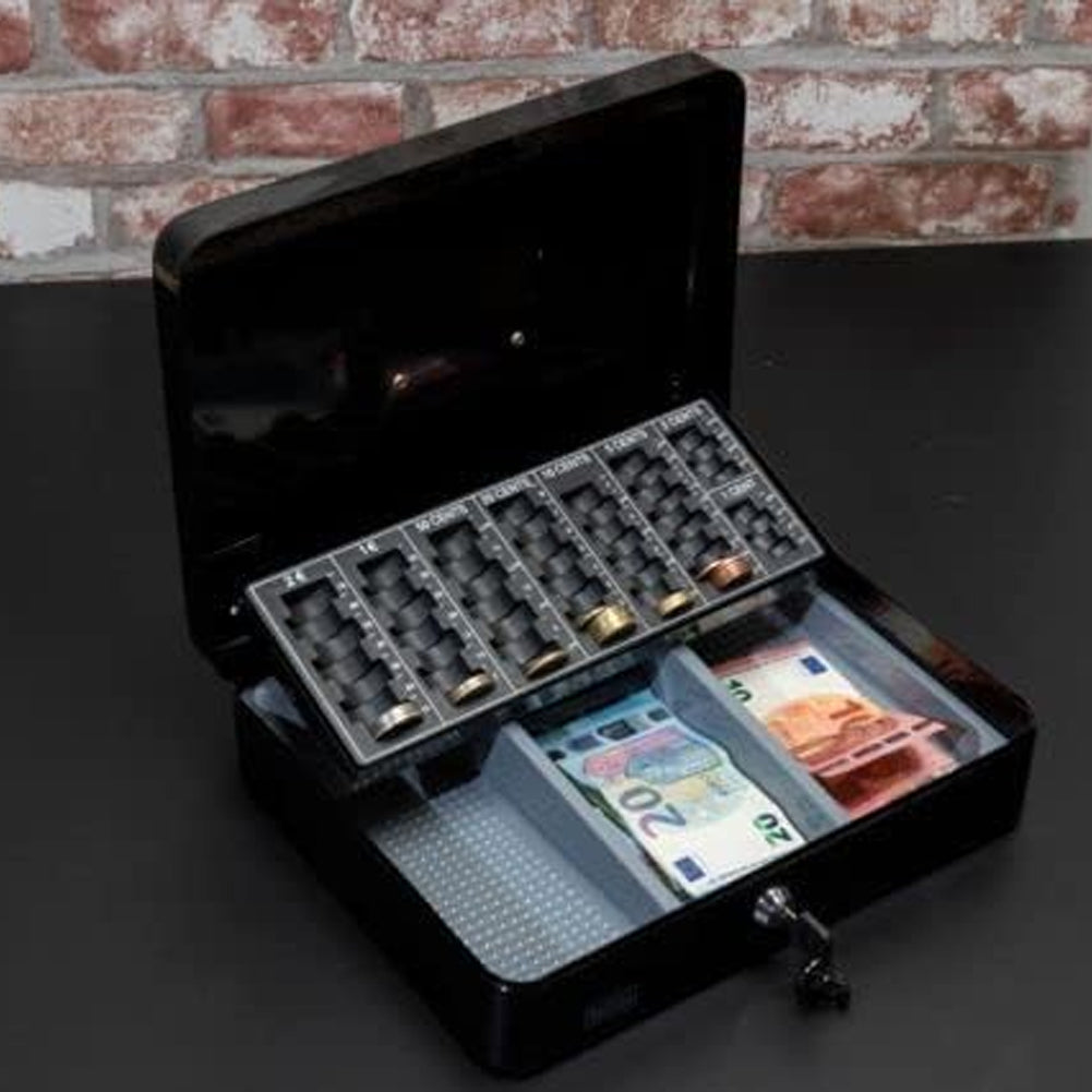 Organizzatore monete: nella cassetta portavalori troverete anche un raccoglitore separato per monete in cui è possibile vedere chiaramente a colpo d'occhio quanto denaro ci sono nella cassa.