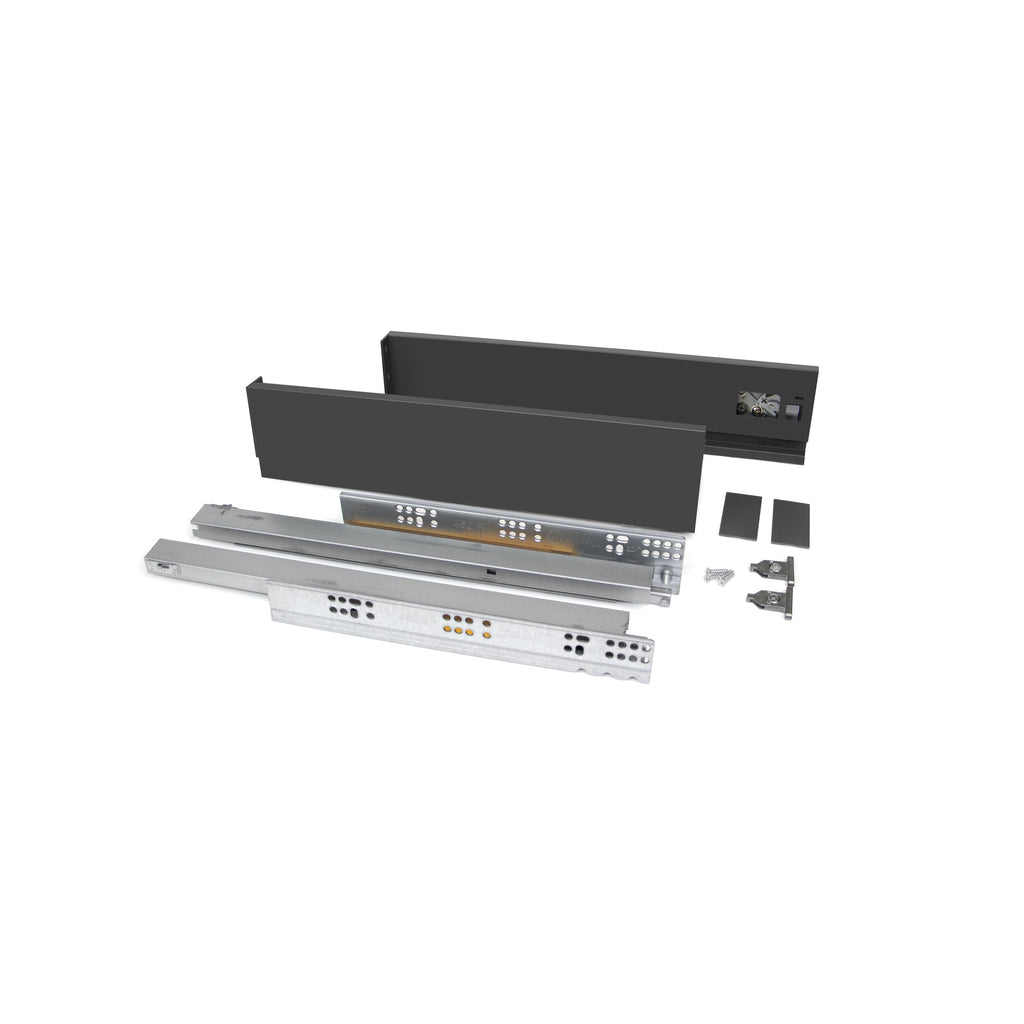 - Kit d'accessoires nécessaires au montage du tiroir extérieur d'une hauteur de 83 mm et d'une profondeur de 500 mm, à l'exception de la façade, du fond et du fond.