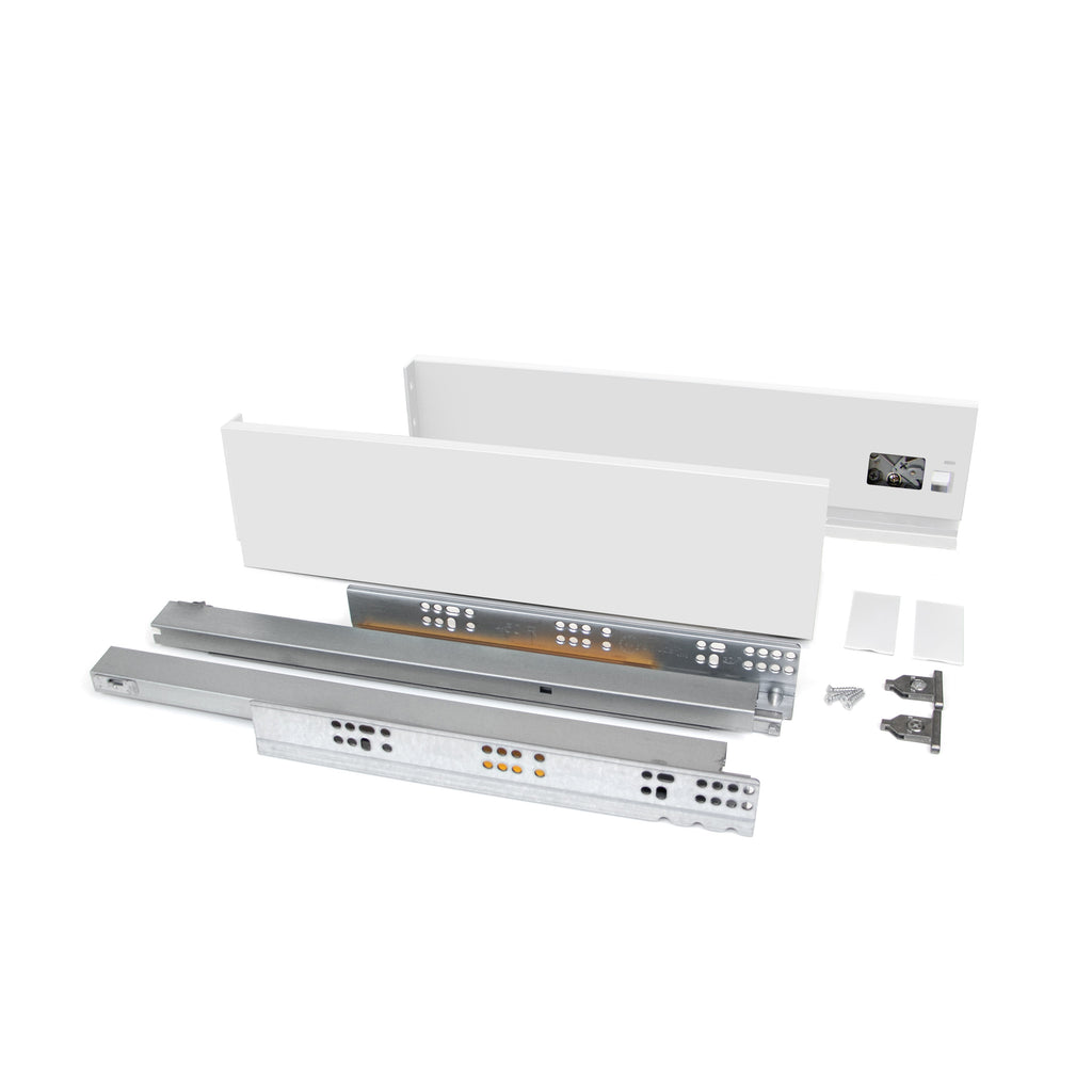 Kit tiroirs de cuisine et de salle de bain Vertex avec tous les éléments nécessaires à son assemblage.C'est la solution optimale pour vos meubles de cuisine, de salle de bain ou d'armoire au design élégant en gris anthracite et blanc . Chaque kit est constitué de tous les éléments nécessaires au montage d'un tiroir extérieur de 93 mm de hauteur en modules d'épaisseur latérale de 16 mm . Comprend : deux rails latéraux, un jeu de glissières à fermeture douce, un jeu de revêtements et de fixations pour la façade du tiroir.