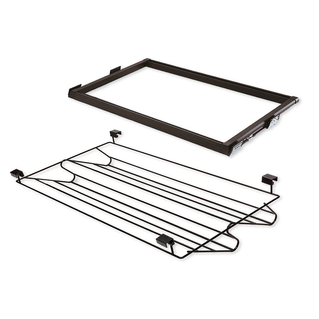 - Kit composé d'un tiroir à chaussures de 775 mm de large et d'un cadre avec des guides de largeur réglables.