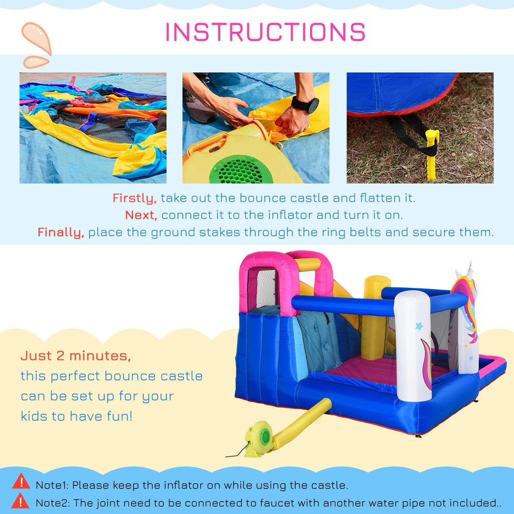 - LE CADEAU PARFAIT : C’est le cadeau parfait pour tous les enfants. Ils pourront s'amuser avec le toboggan aquatique et jouer dans le château enchanté de cette jolie licorne.