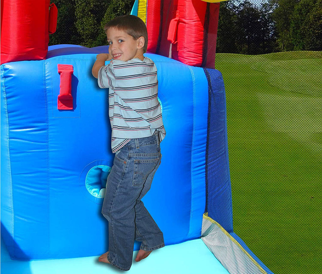 Nouveautés 2021 ! Le nouveau 8 en 1 dans une version renouvelée en structure et en couleurs. Grande surface pour sauter, grimper, 2 toboggans, un pour les plus petits et l'autre grand, panier de basket, piscine à balles, stand de tir et lancer d'anneaux.