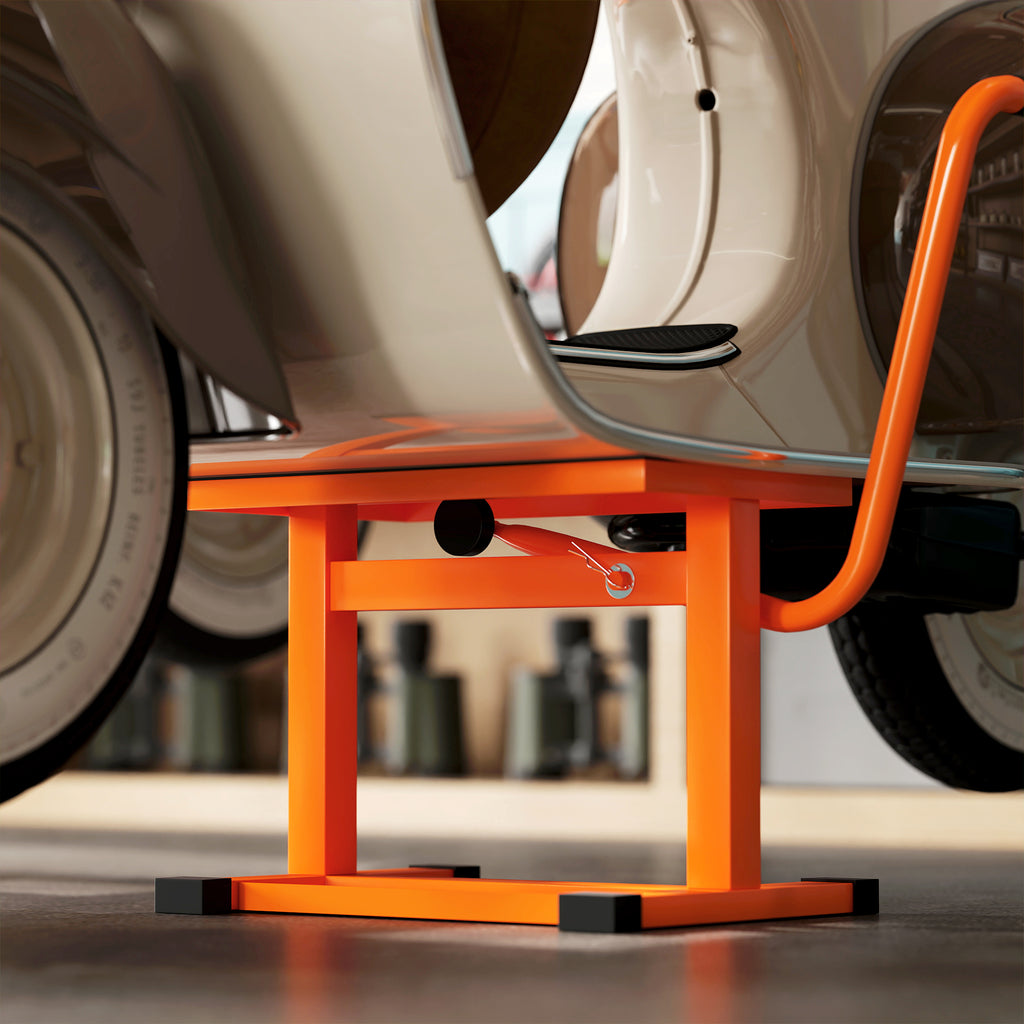 Cavalletto Alzamoto max 150 kg in Metallo con Superficie in Gomma e Manovella, 48x34x43 cm, Arancione