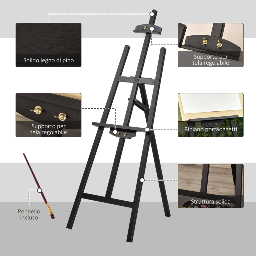 Chevalet Trépied Peinture 51,5x71,5x134,5 cm Bois de Pin Noir