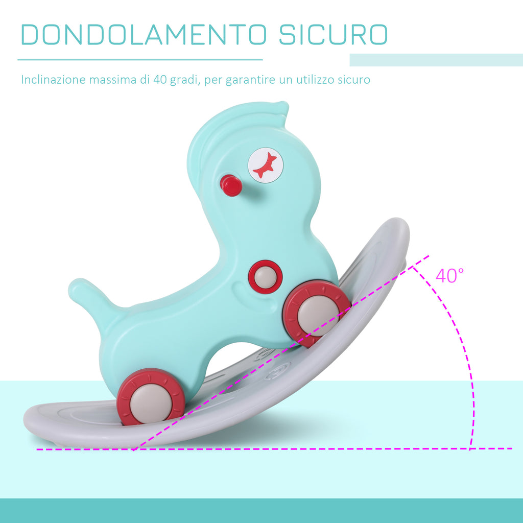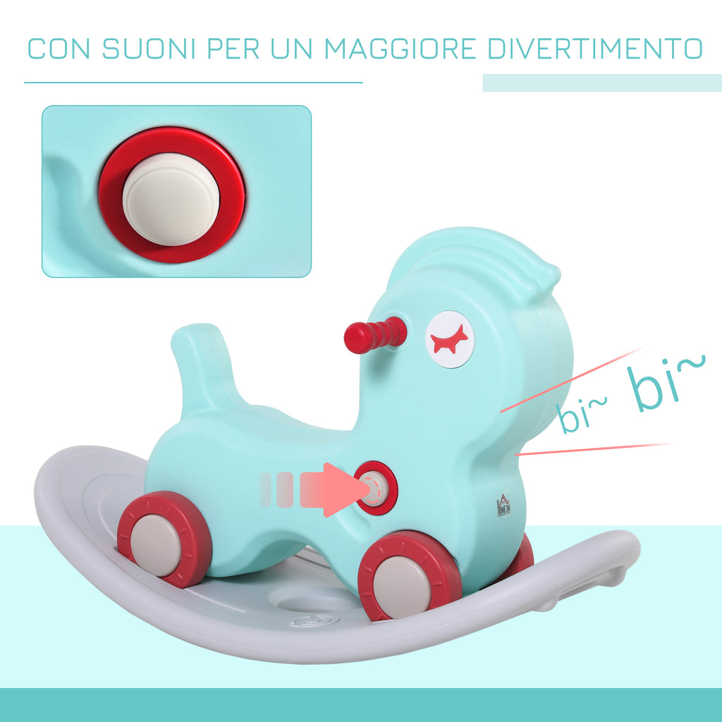 Cheval à bascule 2 en 1 avec roues et jeux sonores en plastique