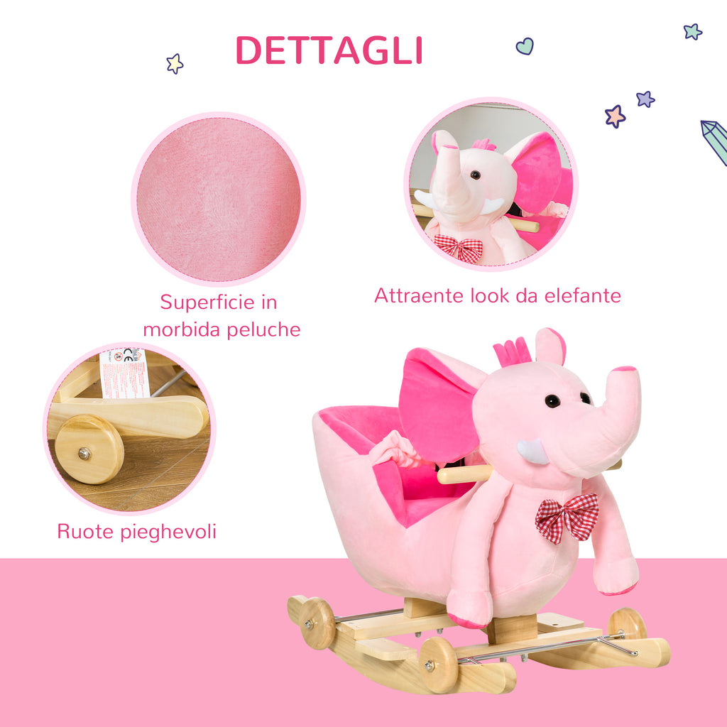 Cavallo a Dondolo per Bambini in Legno e Peluche Elefante Rosa