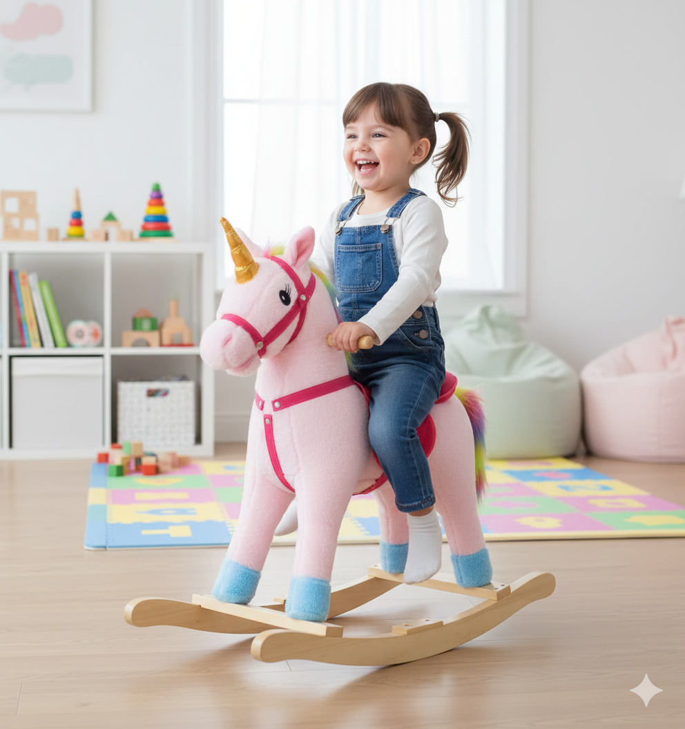 Cheval à bascule Licorne H80 cm en peluche Kids Joy Rose